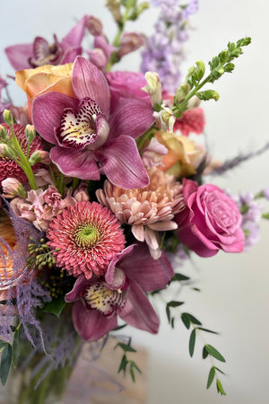 Luxe: The most abundant version with extra snapdragons, roses, and premium stems of orchids for a dramatic, show‑stopping Valentine’s display.