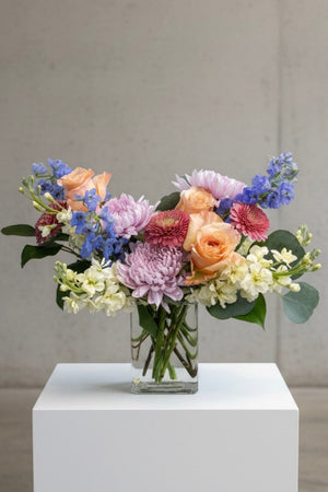 Designed in our Castle Pines studio, this arrangement is a go-to for moments that call for comfort, celebration, or quiet joy. Whether you’re sending love to a friend, marking a milestone, or brightening a hospital room, Pastel Blooms delivers with grace.